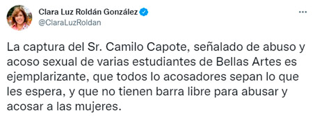 “No vamos a dejar estos casos impunes, no solo de quienes han sido denunciados como agresores sino de quienes, durante tantos años, conociendo las situaciones que se estaban dando en Bellas Artes, incurrieron en omisión y no denunciaron a tiempo”, dijo Roldán tras cumplirse una reunión con la Fiscalía Seccional Valle del Cauca para conocer los avances de las indagaciones que adelanta el ente investigador.