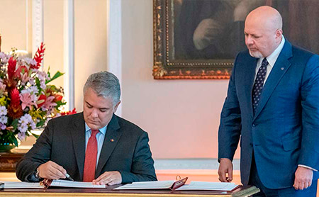 "Colombia está a la altura de sus obligaciones internacionales, al igual que sus obligaciones reglamentarias, con base en el principio de complementariedad. Me complace decir que me puedo retirar de la etapa de investigación preliminar", indicó el fiscal en una declaración conjunta con el presidente colombiano, Iván Duque.