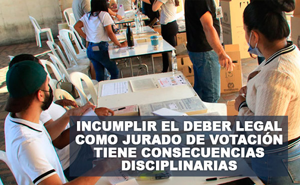 INCUMPLIR EL DEBER LEGAL COMO JURADO DE VOTACIÓN TIENE CONSECUENCIAS DISCIPLINARIAS