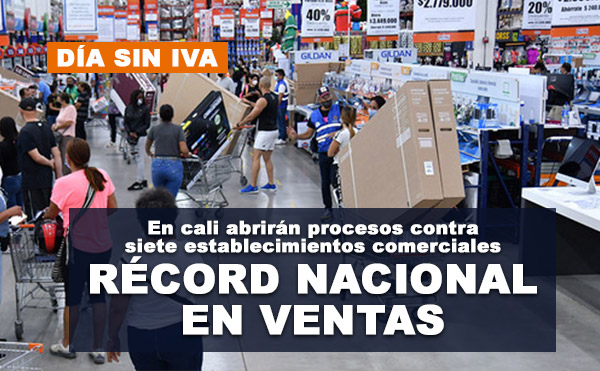Mientras la ministra de Comercio, Industria y Turismo, María Ximena Lombana, en su balance del "día sin IVA" presentó un record nacional en ventas, en Cali el subsecretario de Inspección Vigilancia y Control de Cali, Jimmy Dranguet, dio a conocer que se abrirán procesos legales en contra de siete (7) establecimientos comerciales de la ciudad, por presentar alteraciones en los precios de diferentes productos.